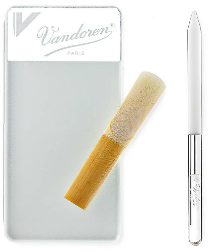 The new Vandoren Glass Reed Resurfacer has two surface areas: the sanding area, which is etched, so it will never wear out, and a smooth area where tip and heart adjustments can be made to the reed. Another great feature: it's washable! The Vandoren Glass Reed Resurfacer comes with a glass reed stick, which is similar to a reed rush but won't wear out because of its precision etched glass.